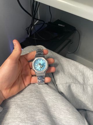 Reloj G-Shock con un diseño moderno y bonito. Facil de conbinar y viene com todo su packaging y papeles. - Esfera con detalles en azul. - Bisel y correa en tono plateado. - Resistente a golpes y al agua hasta 200 metros. - Envios en 24H/ bien protegido