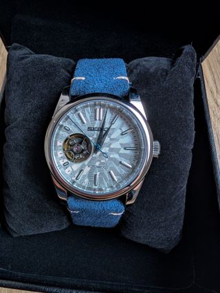 Elegante reloj Seiko Presage con movimiento automático y una llamativa esfera azul. Precio algo negociable - Diseño con apertura en la esfera para ver el mecanismo. - Correa de eslabones plateada. - totalmente nuevo sin rasguños