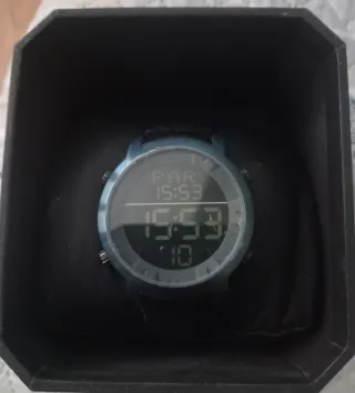 - Sumergible hasta 50 metros. - Correa de silicona cómoda y resistente. - Diseño de camuflaje en tonos azules y verdes. Alarma. Cronometro 1/100.