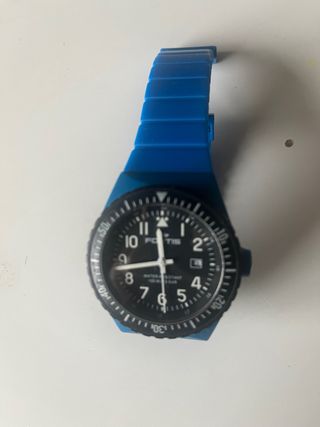 Reloj con correa y esfera en tono azul. INCLUYE PILA - Correa de material flexible. - Esfera con números arábigos.