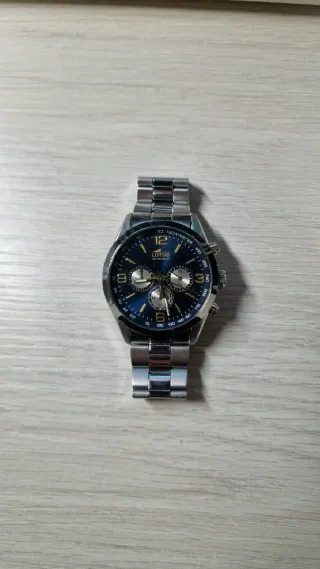 Reloj Lotus con esfera azul y detalles plateados. - Diseño deportivo y moderno. - Correa de metal. - Resistente al agua. No funciona, probablemente sea la pila. Precio negociable