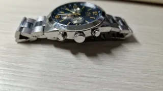 Reloj Lotus modelo Chrono con detalles en azul. Tiene un rayón apenas notable. Acepto ofertas - Correa de piel negra con pespuntes. - Esfera negra con detalles azules. - Cronógrafo
