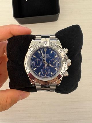 Reloj Seiko Mod inspirado en el icónico modelo Datejust. Calibre NH35 automático, con 41 horas de reserva de marcha. Especificaciones: • 40mm de diámetro y 20mm de ancho de correa. • Esfera color azul marino. • Cristal de zafiro. • Caja y correa de acero inoxidable. • Correa Presidente. • Corona y tapa trasera roscadas y con juntas de estanqueidad. Reloj totalmente nuevo a estrenar. Consultar más información sin compromiso.