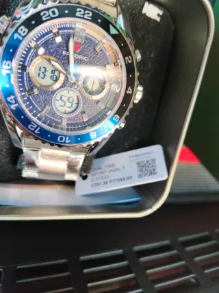 Reloj Lotus con esfera azul Usado únicamente 2 veces Tiene todos los eslabones y la garantía vigente Compatible con android e iOS PVP en tienda: 270€ - Diseño moderno y deportivo. - Correa de metal. - Bisel giratorio