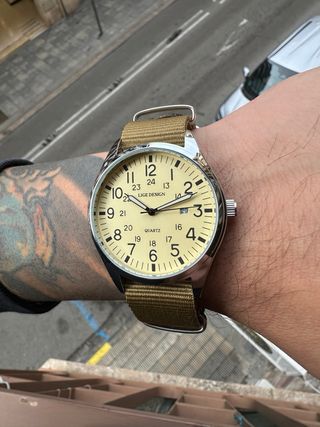 Reloj Aviador Beige y Verde Nuevo