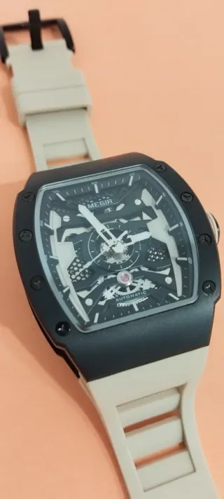 Reloj Megir Automático Negro y correa beig