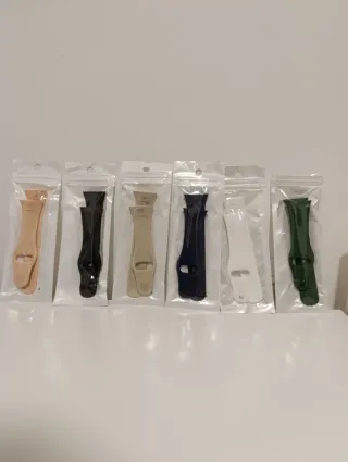 Correa de repuesto para reloj tipo click. Extremo rectangular hueco. - Material de silicona. - Varios colores: verde, negro, beige, rosa, azul marino y blanco. - Apto para relojes tipo Huawei watch y honor watch. 5€/unidad.