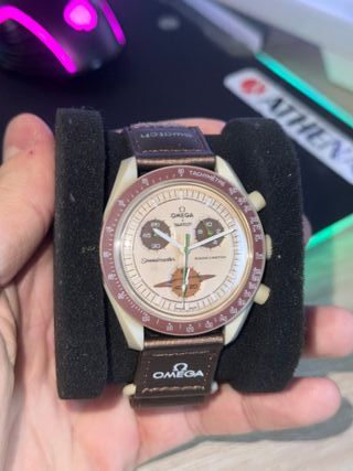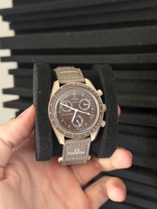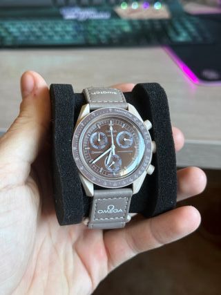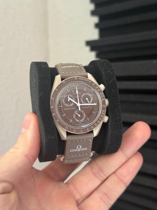Reloj Omega x Swatch Speedmaster. - Esfera marrón. - Correa beige. - Diseño inspirado en el espacio. - Artículo nuevo sin caja