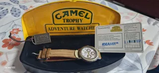 Se vende reloj Camel Trophy Adventure Watches, un accesorio icónico para los amantes de la aventura. - Caja y correa en tonos beige y dorado. - Incluye su caja original y tarjeta de garantía. - La tarjeta de garantía está fechada el 22 de mayo de 1997