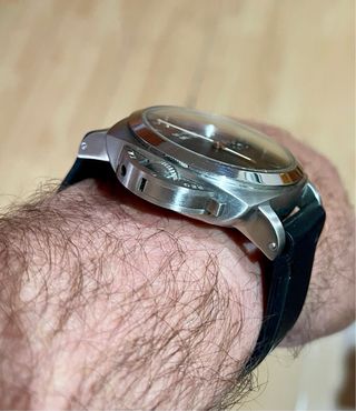Reloj Marina Militare con esfera marrón y detalles plateados. Presenta una modificación con cristal de zafiro en cristal delantero curvo y el trasero. - Cristal de zafiro. - Correa de caucho negra. - Movimiento de carga manual “ Cuello de cisne” - Hermeticidad hecha para 100 metros - 47 mm de caja sin contar guarda corona - 26 mm de ancho de asas - Tanto la correa de caucho que lleva cómo las 2 de piel artesanales y una nato beige son parte del lote. - Guarda corona a la izquierda. - Funciona perfectamente estéticamente alguna leve micro raya. Nota: no me corre prisa venderlo, no hagáis ofertas absurdas. Gracias! #panerai #pam