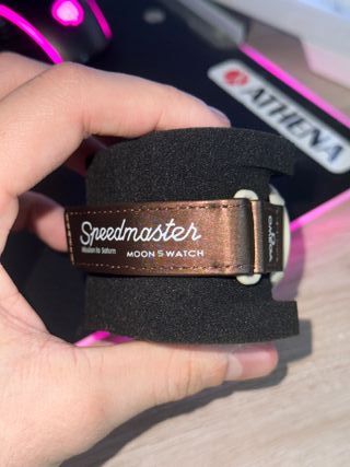 Reloj Moonswatch Mission to Saturn - Esfera beige con detalles marrones. - Correa de tela marrón. - Cristal sin arañazos.