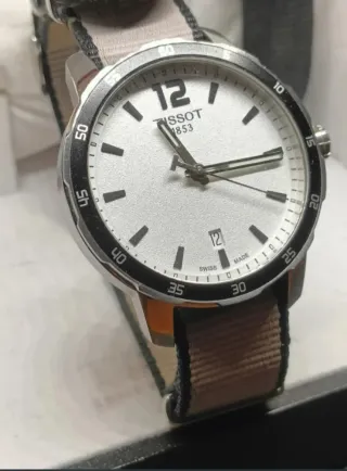 Elegante reloj Tissot con esfera plateada y detalles en negro. La correa es de tela en tono beige con ribetes oscuros. - Esfera plateada con números arábigos y marcadores. - Correa de tela resistente. - Cierre de hebilla.el reloj vale ahora 310 € después del descuento lo vendo por 200€ no regateo reloj casi nuevo con dos correas de tissot