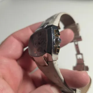 Elegante reloj Breil con correa de piel beige y detalles plateados. - Diseño rectangular de la caja. - Esfera con múltiples indicadores. - Necesita una correa nueva.