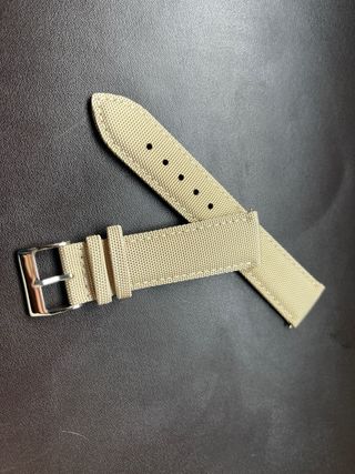Correa de repuesto para reloj fabricada en lona y piel de gran calidad. Color beige árido. Ancho de 20 mm. Espiguillas incluidas de fácil colocación. A estrenar