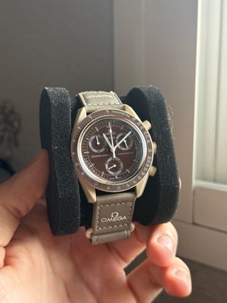 Reloj Omega x Swatch Speedmaster. - Esfera marrón. - Correa beige. - Diseño inspirado en el espacio. - Artículo nuevo sin caja
