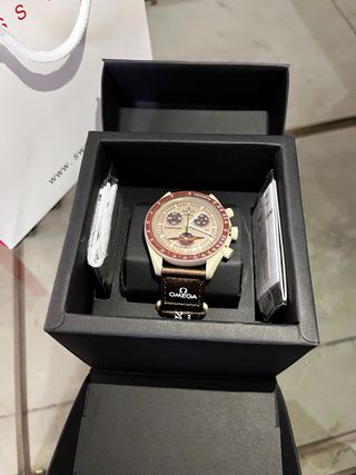 Reloj Moonswatch Mission to Saturn. Como nuevo - Esfera beige y detalles en marrón. - Correa con diseño. - Caja de presentación. Vendedor serio, si hay dudas escribidme.
