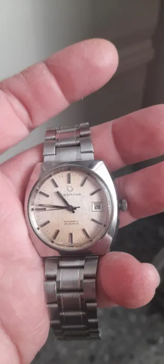 Reloj Certina automático con esfera beige y detalles plateados. - Correa de metal plateado. - Ventana de fecha. - 25 joyas. Necesita revisión...se para Sólo pago bizum y envío certificado posterior Negociable
