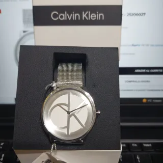 Elegante reloj de pulsera de Calvin Klein para mujer. - Diseño moderno y minimalista. - Correa de malla ajustable. - Esfera redonda con detalles en contraste.