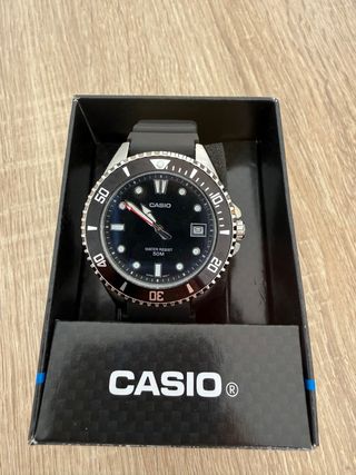 Reloj Casio con diseño analógico y detalles en negro y plateado. - Bisel giratorio con marcadores. - Correa de eslabones metálicos. NO ENVIO NI ME DESPLAZO