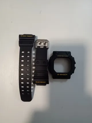 Correa y bisel de repuesto para G-Shock GX 56 y GXW 56 En perfecto estado. Las letras son de color amarillo. - Correa negra con SHOCK RESIST y MUD RESIST. - Bisel protector negro con PROTECTION y G-SHOCK.