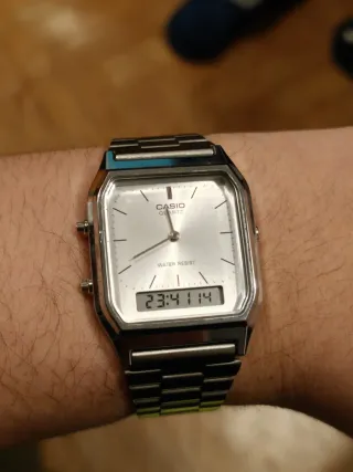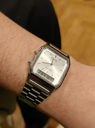 Reloj Casio con un diseño clásico y elegante, perfecto para añadir un toque retro a tu estilo. Un año de uso. Lo vendo por fakta de uso, no es mi estilo. Está prácticamente nuevo. Tengo caja original 🫡 - Esfera plateada. - Correa de metal plateado. - Detalles en negro.