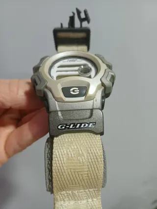 Este reloj Casio G-Glide es perfecto para actividades deportivas y de aventura. Su diseño robusto y su correa de tela lo hacen ideal para el uso diario. - Correa de tela con patrón. - Hebilla con inscripción G-GLIDE.