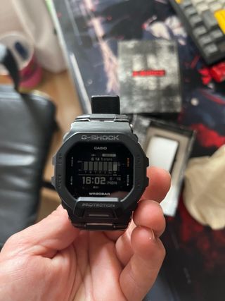 Características: - Resistencia "G-Shock" - Sistema de recarga solar: se recarga con muy poca luz, te olvidas del cambio de pila. - Conexión bluetooth a través de la APP de Casio: ajuste automático de fecha y hora, localizador de teléfono, gestión de alarmas y ajustes del reloj a través del teléfono, etc. El reloj se encuentra en un estado impecable (ni un solo rayon en el cristal) y funciona y se conecta al teléfono a la perfección. Caja, conectores y hebilla de acero inoxidable. Correa de caucho grueso ajustable por corte. Incluyo protector de cristal templado, herramientas, caja y documentos, y correa y carcasa original.
