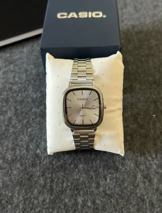 Reloj Casio con un diseño clásico y elegante, perfecto para añadir un toque retro a tu estilo. Un año de uso. Lo vendo por fakta de uso, no es mi estilo. Está prácticamente nuevo. Tengo caja original 🫡 - Esfera plateada. - Correa de metal plateado. - Detalles en negro.