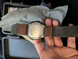 Reloj Casio Geotrail con correa de tela y detalles en piel. Tiene un pequeño raspón en la esfera - Correa de tela resistente. - Detalles en piel marrón. - Cierre de hebilla.