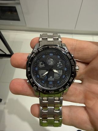 Reloj Casio Edifice con diseño deportivo y esfera analógica-digital. - Bisel con taquímetro. - Resistencia al agua de 100 metros. - Correa de acero inoxidable. Es nuevo, ha sido un regalo pero yo no uso.