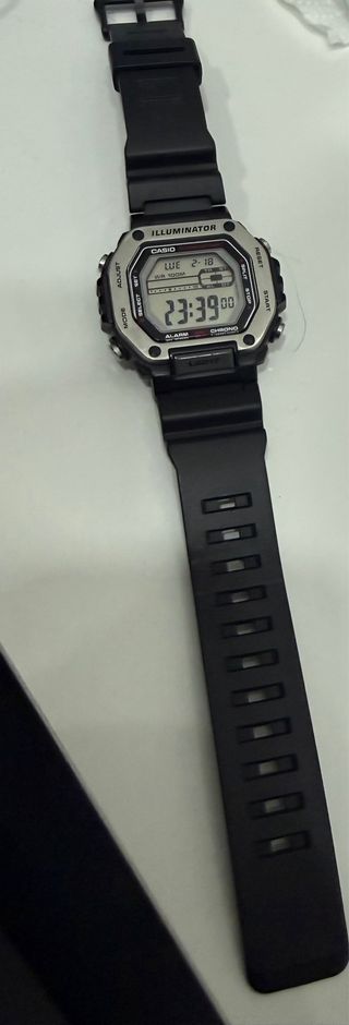 Reloj Casio MWD-110H con diseño deportivo y moderno. - Correa de resina negra. - Bisel plateado. - Pantalla digital con iluminación.