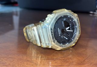 Casio GSHOCK Skeleton de segunda mano . -Funcionamiento optimo. -Correa amarillenta del uso ( se puede adquirir una correa nueva por buen precio ( son intercambiables ) Modelo : GA-2100SKE-7A -Ticket de compra