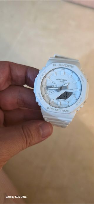 Reloj Casio G-Shock en color blanco. Un accesorio resistente y con un diseño moderno. - Correa de resina. - Esfera analógica y digital. - Resistente a golpes. Muy nuevo.