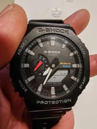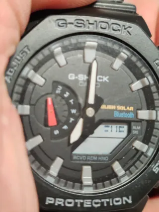 Reloj Casio G-Shock con tecnología Bluetooth y carga solar,, con uso y alguna marca pero nada grave Correa en perfecto estado, le he cambiado la pila pero no le termino de entender su funciona, no le he puesto en funcionamiento, 70€ también realizó envíos por mensajería 6€ y el pago por bizum o transferencia - Correa negra. - Esfera con detalles en gris y rojo. - Indicadores de modo y funciones.