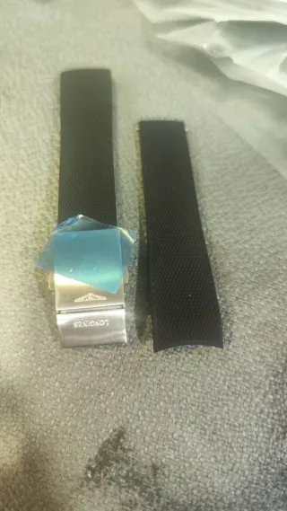 Correa de caucho original Longines con cierre desplegable. Referencia L682154893. - Material exterior: Caucho. - Material interior: Caucho. - Cierre desplegable de acero inoxidable. - Válido para muñecas hasta 18cm. - Nuevo sin estrenar. - Se cortó pequeño por error. - Para Hidroconquest ancho 21mm