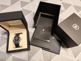Gran oportunidad: precioso reloj suizo VICTORINOX Swiss Army, impecable. Se incluye el reloj y su caja completa original con instrucciones. Se vende sin pilas. - Correa de caucho negra. - Esfera negra con detalles plateados - Marca la hora y dia. - Caja original incluida.
