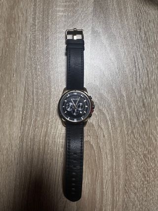 Reloj Emporio Armani con un diseño inspirado en la aviación. Su esfera oscura y detalles plateados le dan un toque elegante. ***Precio negociable*** - Hybrid Smartwatch - Correa de cuero negra. - Caja de acero inoxidable. - Esfera analógica con subesfera.