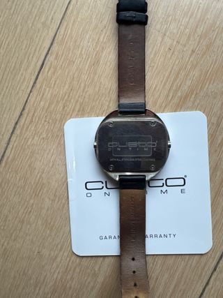 Elegante reloj con correa de cuero y esfera cuadrada. Pila gastada - Diseño moderno y sofisticado. - Correa de cuero color beige. - Esfera cuadrada con detalles dorados.