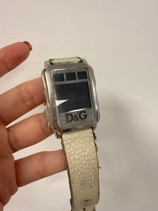 Reloj original de la marca Dolce & Gabbana con un diseño moderno. - Correa de cuero blanco. - Caja plateada. - Esfera con detalles en negro.