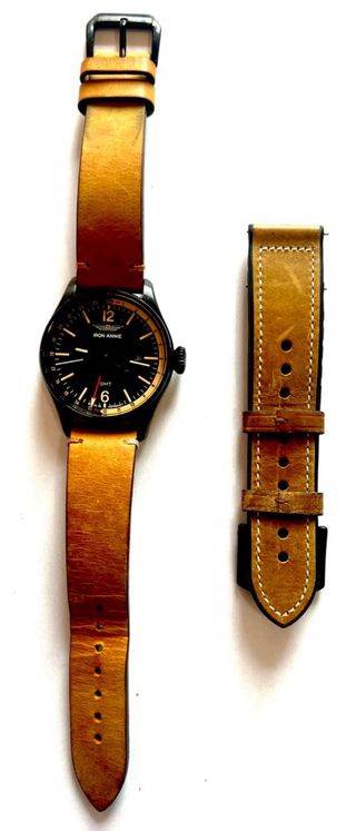 Reloj Iron Annie con correa de cuero marrón y esfera negra. - Diseño con indicador GMT. - Correa de cuero. - Esfera negra.