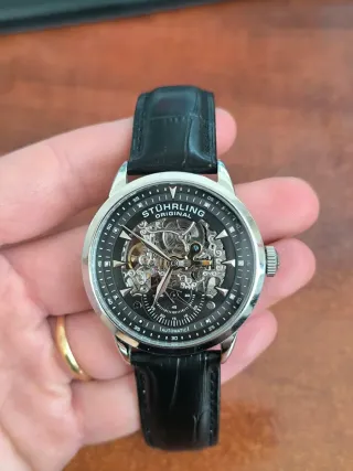 Vendo reloj de la marca sthurling en muy buen estado. - Movimiento automatico - Esfera skeleton - Tapa trasera transparente - Tamaño de 44mm - Correa de cuero con cierre de mariposa Cualquier duda o si necesitas alguna foto en concreto de algo, pide sin problemas. Tengo mas relojes en mi perfil, me estoy quitando cantidad de mi coleccion. No acepto ofertas ridiculas.