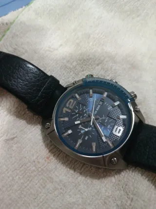 Elegante reloj Diesel con esfera azul y correa de cuero marrón. - Diseño moderno y llamativo. - Correa de cuero con hebilla. - Esfera con detalles en contraste. - Tiene un pequeño arañazo en la esfera