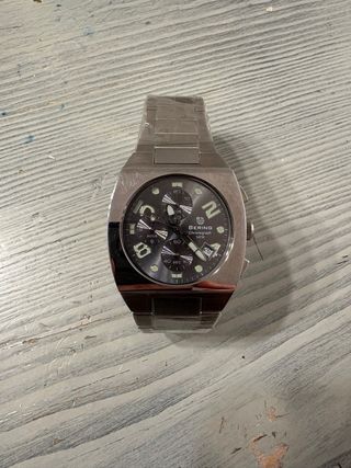 Reloj de pulsera Bering con diseño deportivo y elegante. - Esfera gris con detalles plateados. - Correa de acero inoxidable. - Función cronógrafo. - tiene algun arañazo