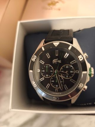 Elegante reloj Lacoste original con correa de cuero negra. - Artículo nuevo sin estrenar ( tiene hasta el plástico en la esfera del reloj ) - Esfera redonda. - Logo de Lacoste visible en la esfera. - Producto valorado en 160€