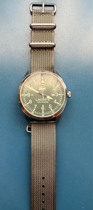 Reloj Lacoste de primera mano con correa. - Diseño moderno y elegante. - Correa de material resistente.