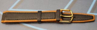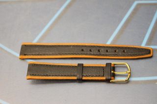 15. Correa de cuero bicolor, negro y marrón. 16 mm. Años 70, stock de relojería.