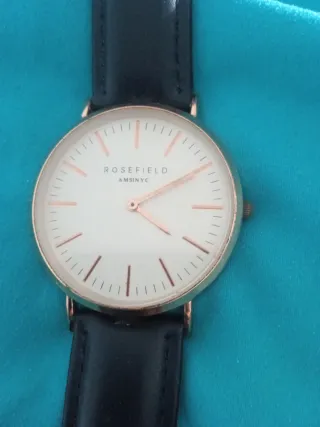 Elegante reloj Rosefield con esfera blanca y detalles dorados. Su diseño minimalista lo hace perfecto para cualquier ocasión. - Correa de cuero negra. - Caja de metal con acabado dorado.