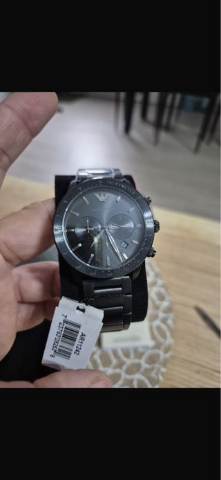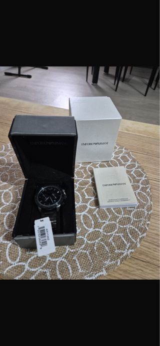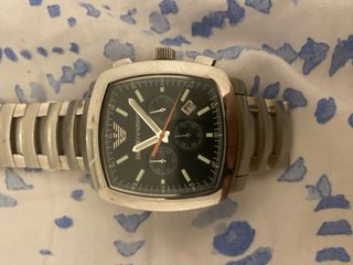 Elegante reloj Emporio Armani con detalles en negro y plateado. - Diseño moderno y sofisticado. - Correa de metal. - Esfera oscura. falta ponerle la pila