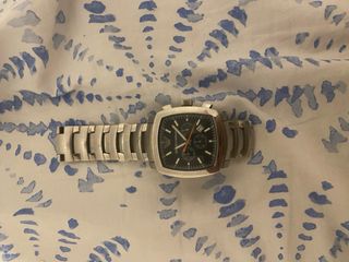 Elegante reloj de la marca Lotus con un diseño moderno. - Caja y correa de metal plateado. - Esfera rectangular en tono claro. - Detalles en negro.
