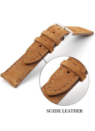 Correa de ante para reloj de 24mm de ancho. Un accesorio elegante y duradero. - Material: Ante - Ancho: 24mm - Hebilla metálica plateada